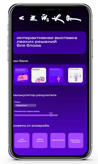 идеи – интерактивный лендинг-выставка, на котором находятся различные легкие решения — инструменты для упрощения ведения блога.